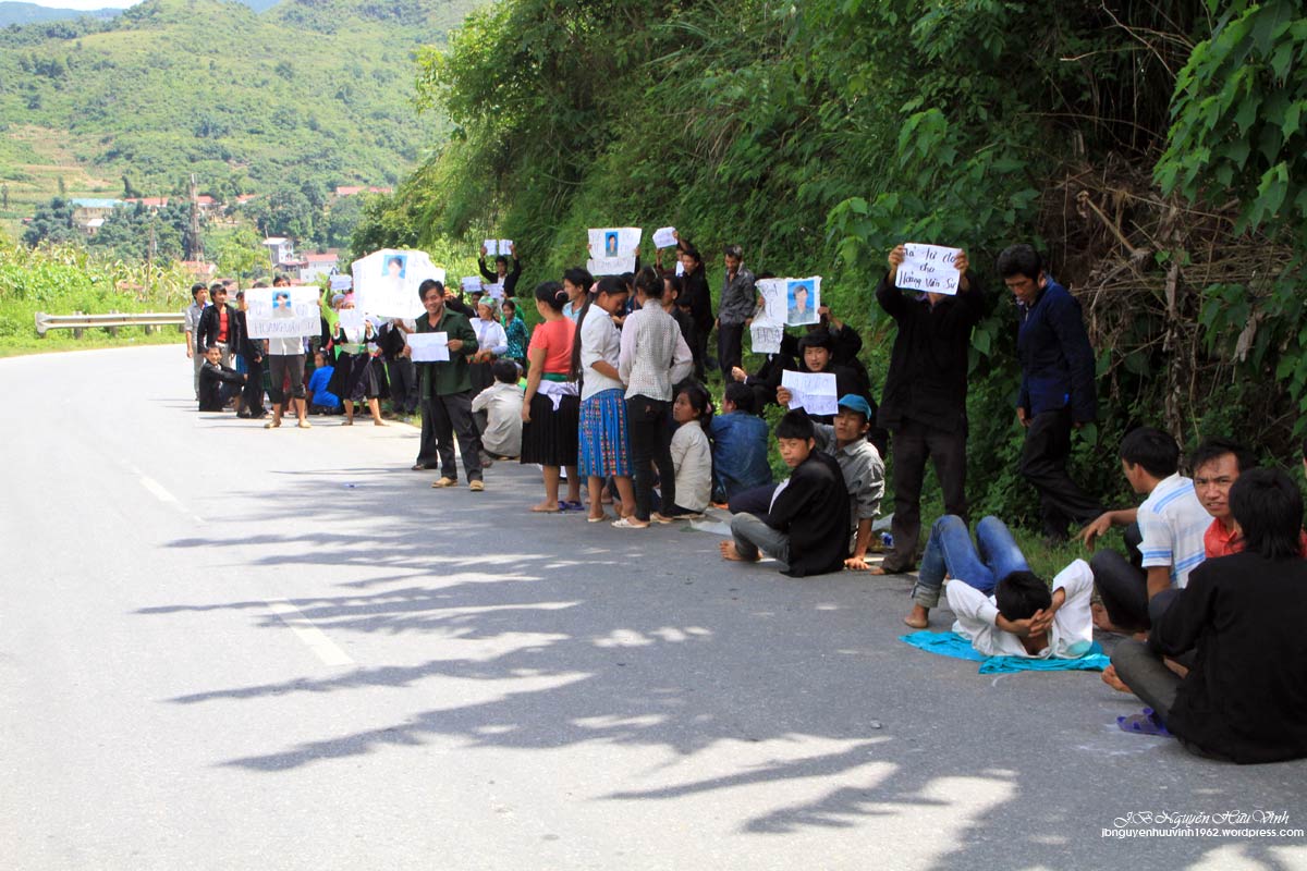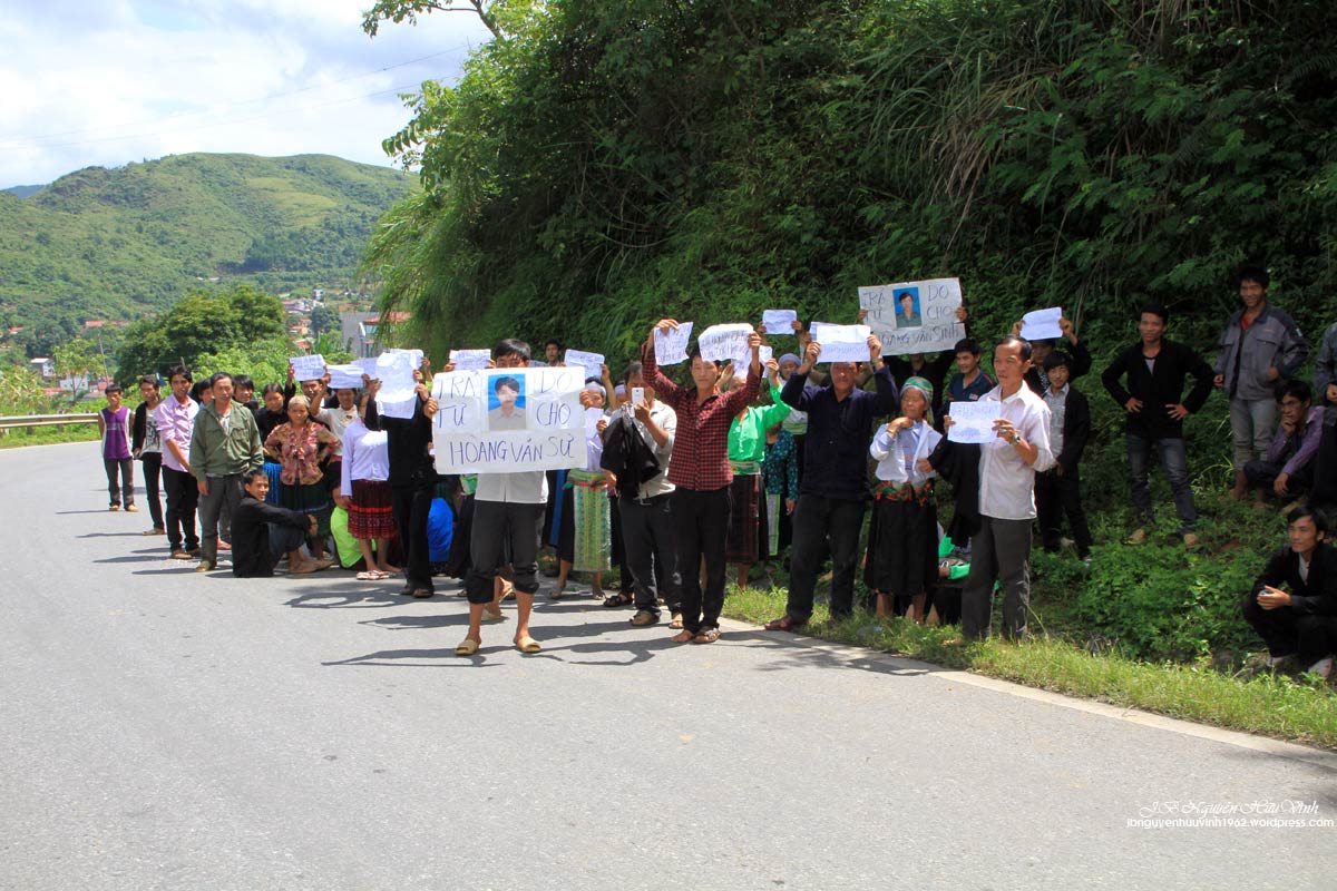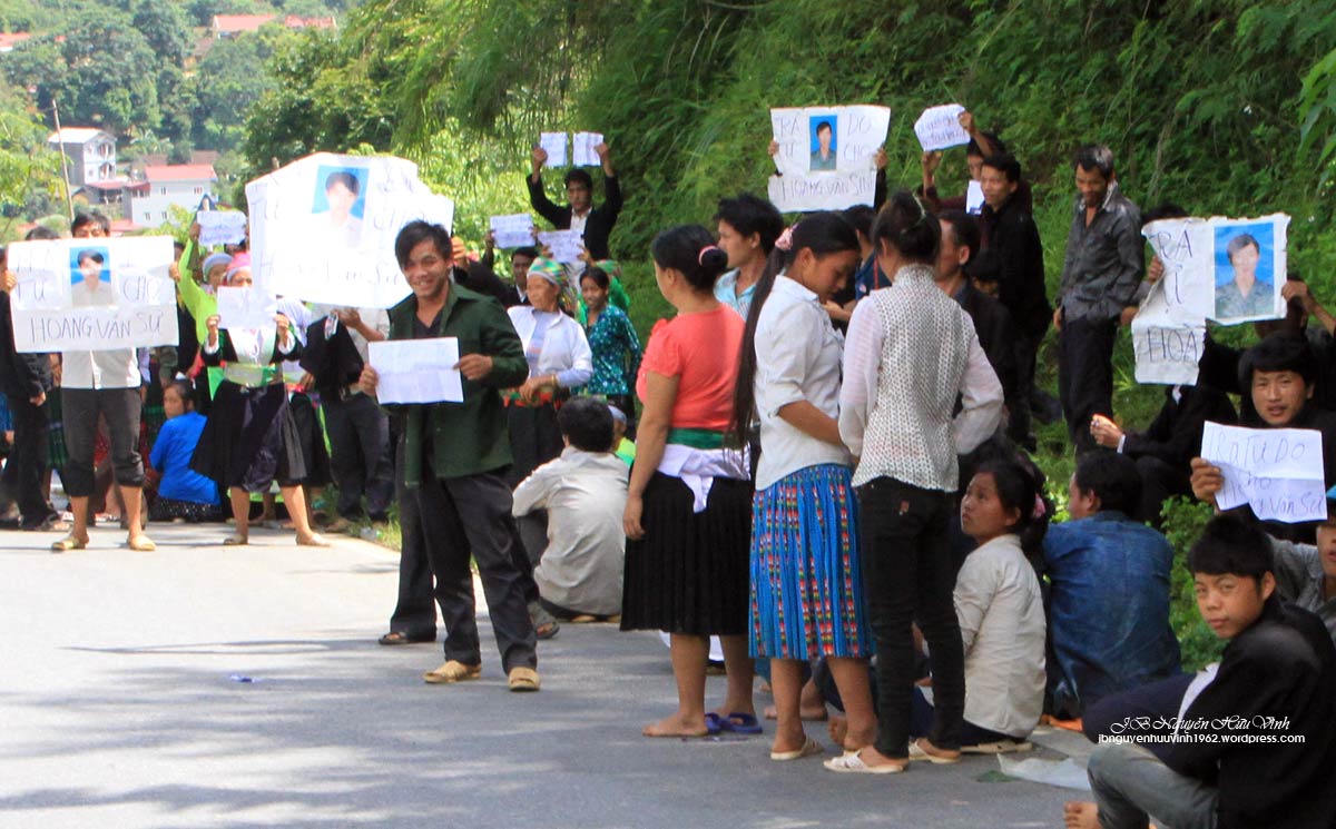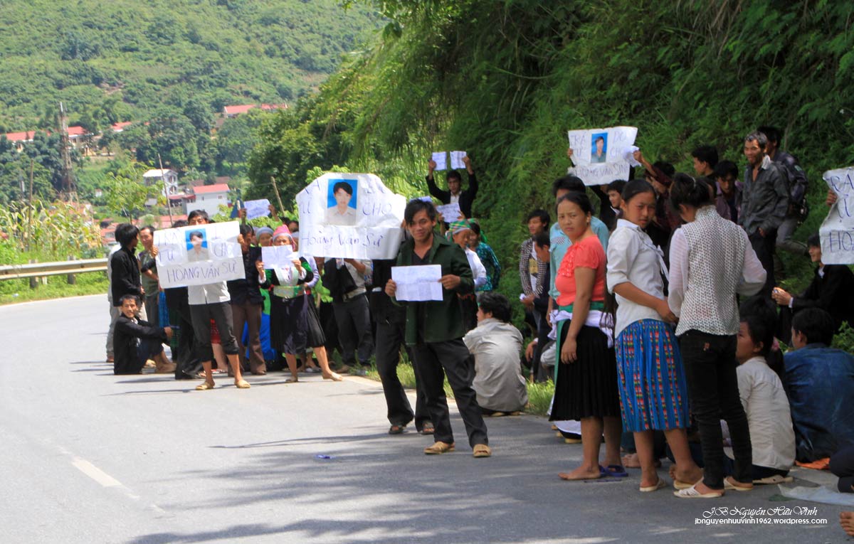 Các khẩu hiệu kêu gọi tự do cho các nạn nhân và quyền cho người H'Mông