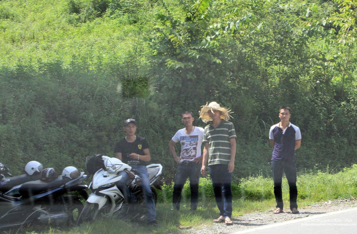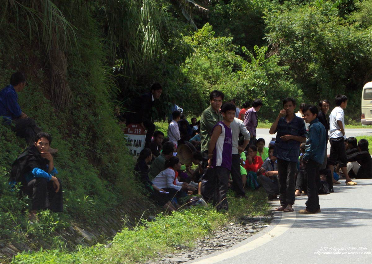 Một toán người H'Mông đang ngồi nghỉ dưới bóng mát, họ đi từ sáng sớm đến giờ vẫn nhịn đói ở đây