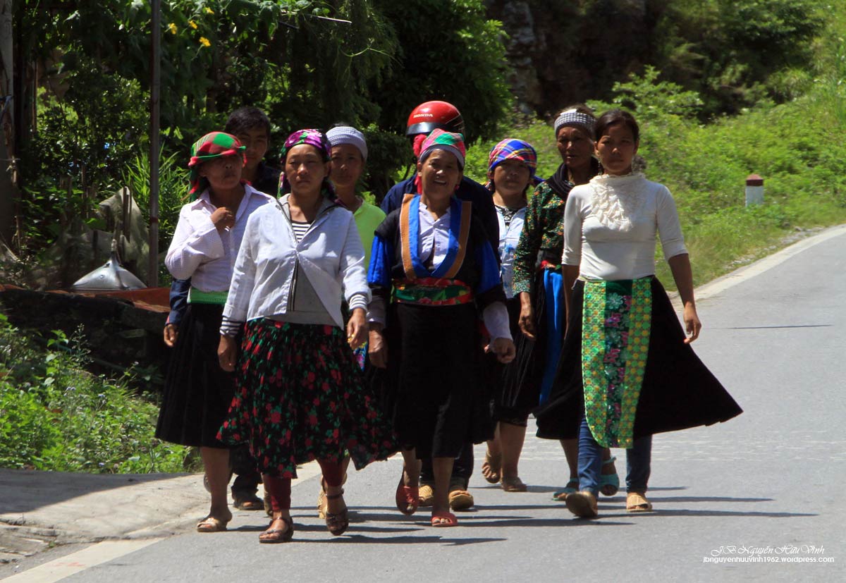 Bà con người H'Mông vẫn đi từng đoàn, từng đoàn