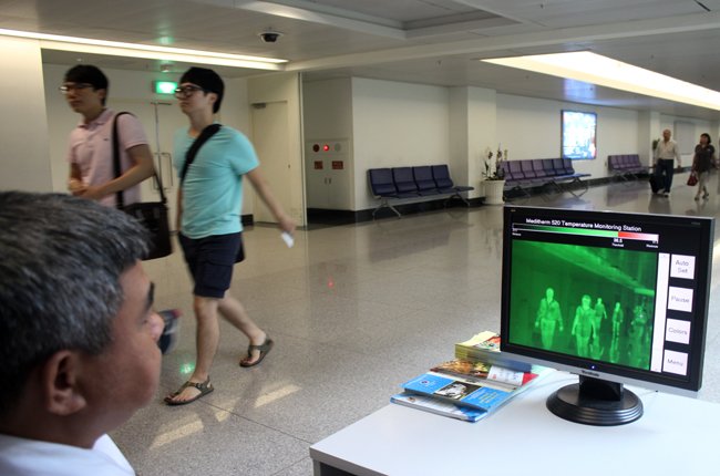 Máy đo thân nhiệt được đặt tại sân bay Tân Sơn Nhất  để ngăn dịch bệnh Ebola - Ảnh: Phạm Thanh