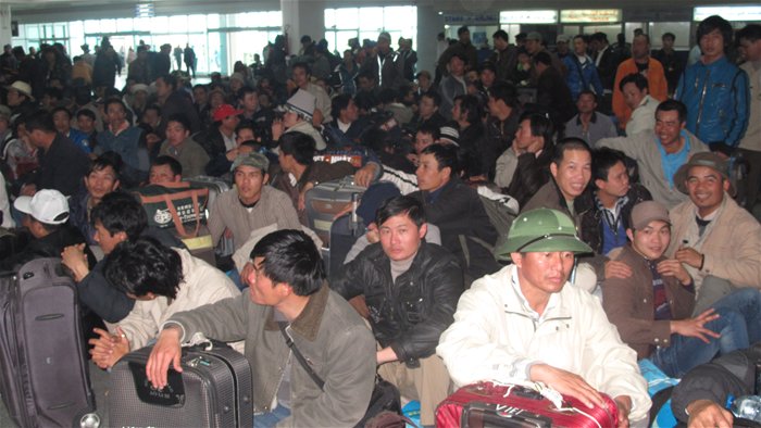 Lao động Việt Nam ở Libya đang chờ lên máy bay về nước trong đợt giải cứu tháng 3-2011 - Ảnh: Chiến Thắng